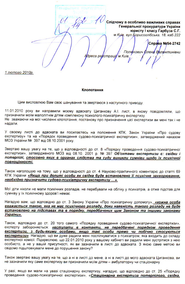 Однако именно после этого, для Генпрокуратуры наиболее остро стал вопрос о проведении процедуры психиатрического обследования детей.