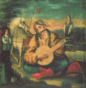 Мамай - ім'я половецьке. Він сидить зі схрещеними ногами, зодягнений по-східному, на голові - "оселедець", який носили половці...