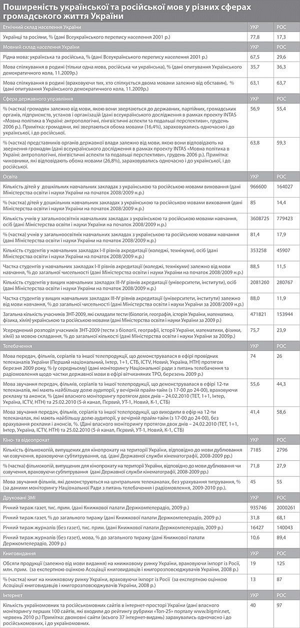 Лише 7% громадян України відносять мовне питання, а саме проблему державного статусу російської мови, до числа 25 основних життєвих проблем, що їх непокоять. (Опитування Всеукраїнської соціологічної служби за грудень 2009 року).