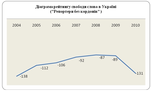 Не краща ситуація і з станом дотримання конституційних прав та свобод українців, зокрема свободи слова. Щоб не бути голослівним, пропоную порівняти позиції України в щорічному рейтингу свободи слова, здійснюваному авторитетною міжнародною організацією "Репортери без кордонів".