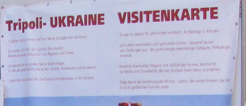 Можливо, деякі українські відвідувачі павільйону здогадалися, що йшлося про трипільську культуру... Проте, німецькі відвідувачі, певне, запитували себе, що спільного має Україна з Ліваном – місто Триполі – і, взагалі, про що плакат.