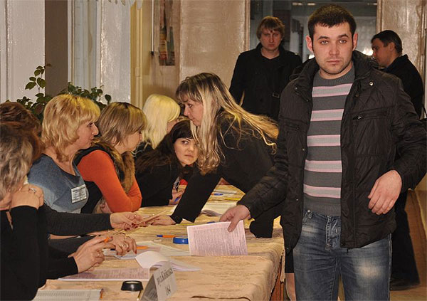 На всіх виборчих дільницях "своєю" для них була член комісії, представник провладного або "технічного" кандидата, одягнута в синього кольору вбрання. Тому не дивний для мене збіг обставин виявився у тому, що всі вони підходили до одного й того ж столика і брали бюлетень для голосування саме у неї.