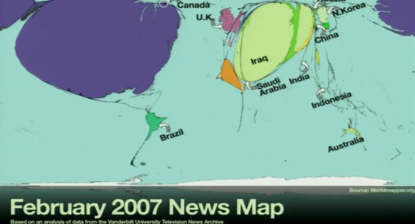 Для прикладу, дослідники запропонували карту світу, яка базується на кількості приділеної уваги з боку ЗМІ у США:
