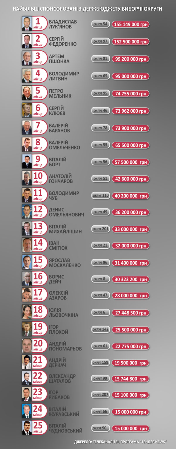 ТОП-25 найбільш спонсорованих з держбюджету округів