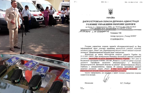 Як тут не згадати депутата Дніпропетровської облради, гендиректора ахметівського "Павлоградвугілля" та кандидатв від ПР по 36 округу Артура Мартовицького, що "подарував" лікарні в своєму окрузі 4 швидкі, начепивши на них брелоки Партії регіонів. Швидкі були закуплені за бюджетні гроші.