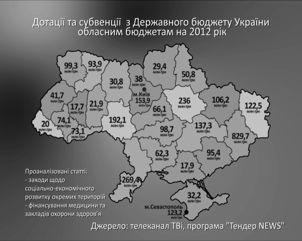 Загалом дотація обласних бюджетів, яка нам видається не надто рівномірною та справедливою за двома згаданими статтями виглядає так: