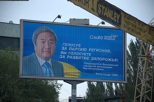 Втім, його думку про урядову партію явно не поділяє мер Запоріжжя Олександр Сін, який з біл-борду, повз який ми саме проїздили, вочевидь ніяковіючи, нагадував запоріжцям, що ПР – це їх все.