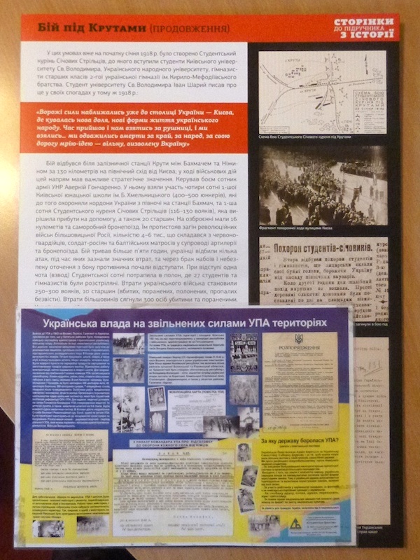 Так, було заплановано "Розповсюдження та встановлення для публічного огляду в закладах освіти й культури комплекту плакатів з історії України <…> у формі ламінованих плакатів – формат А3, тираж: 2000 комплектів, вартість: 10 гривень плакат, у комплекті 9 плакатів, загальною вартістю 180 тисяч гривень. Виконавець – головне управління освіти і науки ОДА спільно з ВМГО "Студентське братство"...
