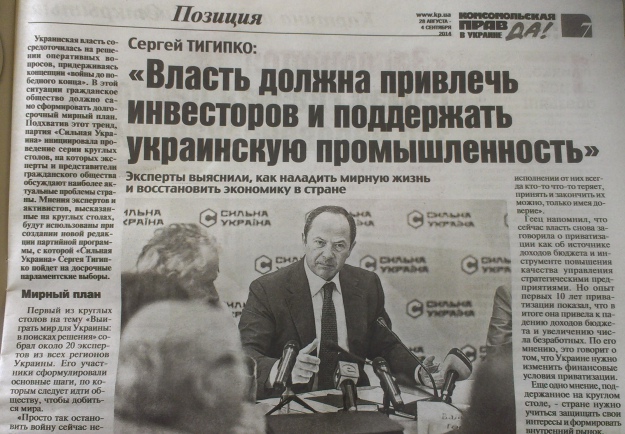 Хоча Тігіпко використовує і альтернативні теми для піару. Це ще один безпрограшний варіант — організувати якийсь захід, типу круглий стіл "Як врятувати Україну" з якимись експертами, і зробити з нього репортаж.
