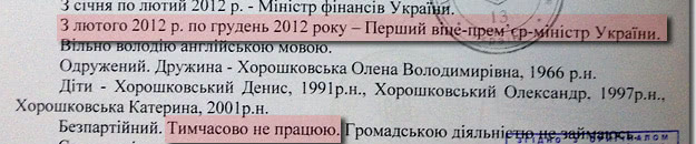 При чому, коли Хорошковський переподавав свою автобіографію до ЦВК, де згадав про роботу у власній фірмі, він проявив недбалість - забув викреслити фразу "Тимчасово не працюю" зі старої редакції автобіографії.