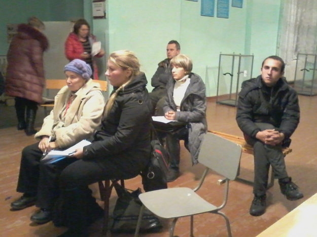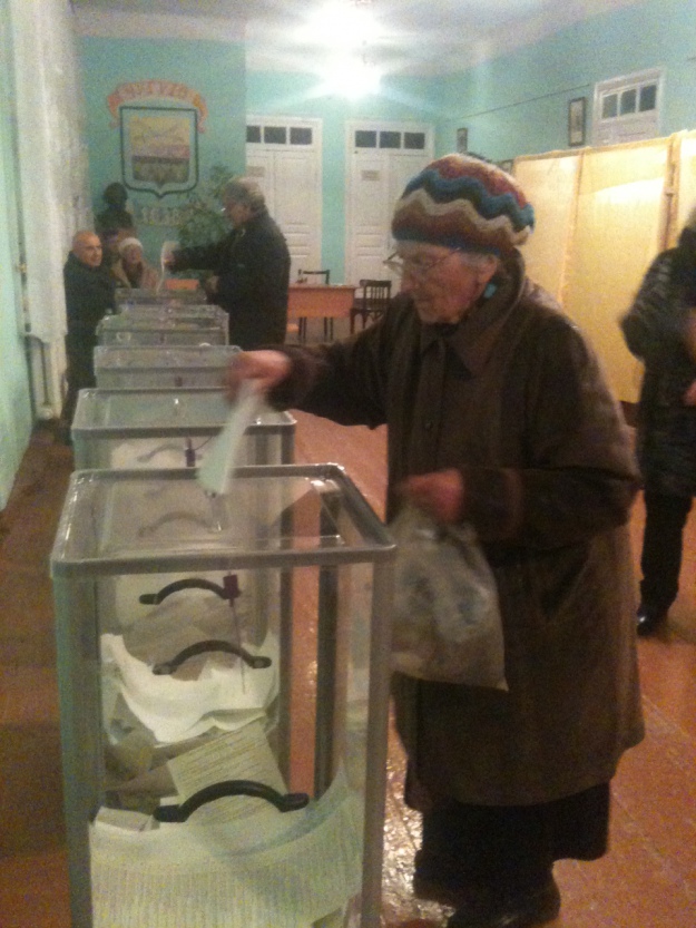 Пожилая наблюдательница наклоняется ко мне и шепчет, что Шенцев подкупал избирателей, рассказывает, что наблюдатели от оппозиции получали по 3-4 тысячи гривен за то, что агитировали за Шенцева.