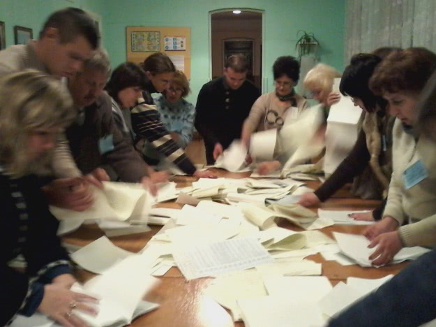 Через минут двадцать монотонного раскидывания бюллетеней становится понятно, что лидирует Оппозиционный блок (261 голос) и коммунисты (101 голос). Даже за интернет-партию есть два голоса – они встречаются восторженными возгласами комиссии "Вы видели, кто там в ней баллотируется?" За Правый Сектор проголосовали всего 3 человека.