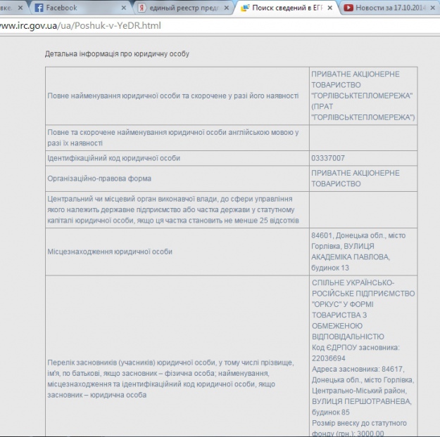 С осени нынешнего года в учредителях у ЗАО "Горловсктеплосети", согласно данным Единого государственного реестра физических и юридических лиц, значится совместное украинско-российское предприятие – ООО "Оркус".