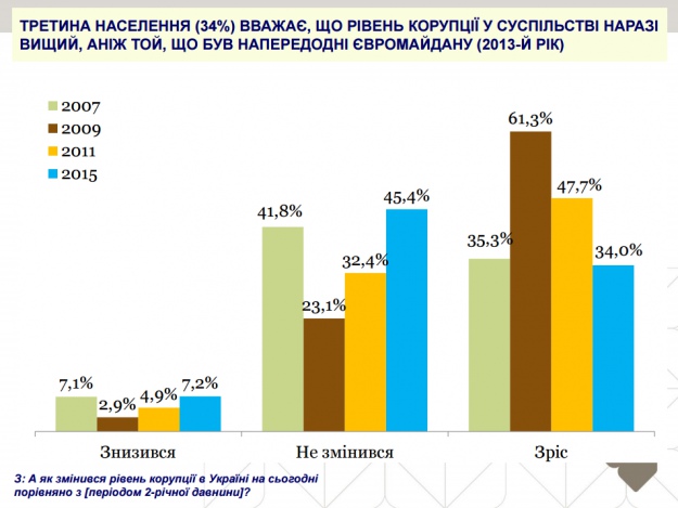 Поглянувши на результати опитування, можна стверджувати, що у сфері боротьби з корупцією змін відбулося небагато.