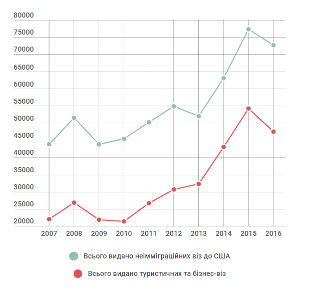 У 2016 році, через посилення міграційної політики США, американська сторона ухвалила на 6% менше позитивних рішень, ніж у 2015 році. Хоча це на 15% більше, ніж в тому ж таки 2014 році. А саме – на 10 тисяч віз.