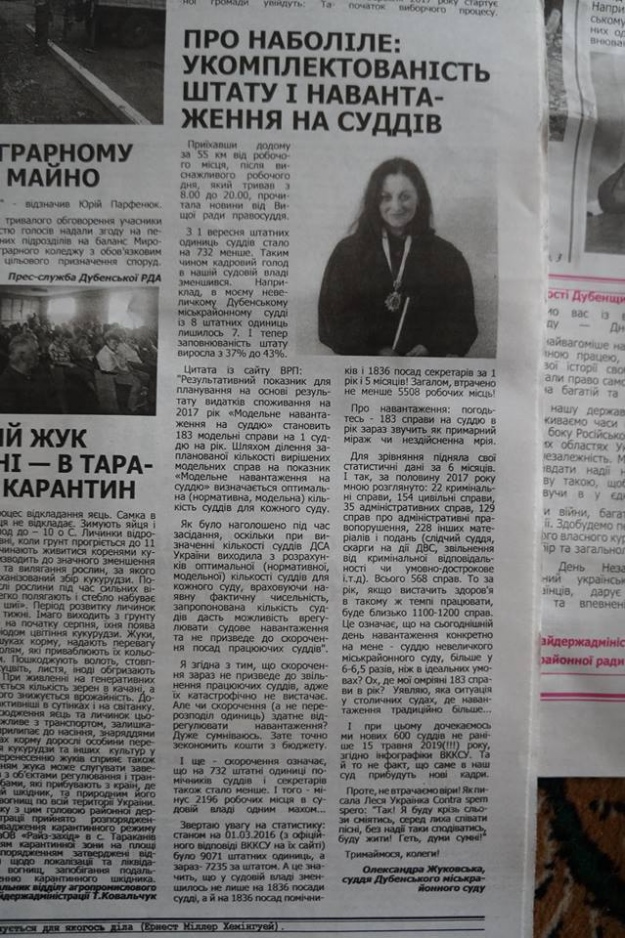 И всё это – благодаря маленькому индивидуальному блогу на Фейсбуке судьи Дубенского горрайонного суда Ровенской области Александры Жуковской.