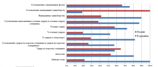 Так, для игры российской сборной (для ее оценки дополнительно использовалась статистика четырех товарищеских матчей, сыгранных перед Чемпионатом мира) характерна ставка на силу, а не технику или стратегию.