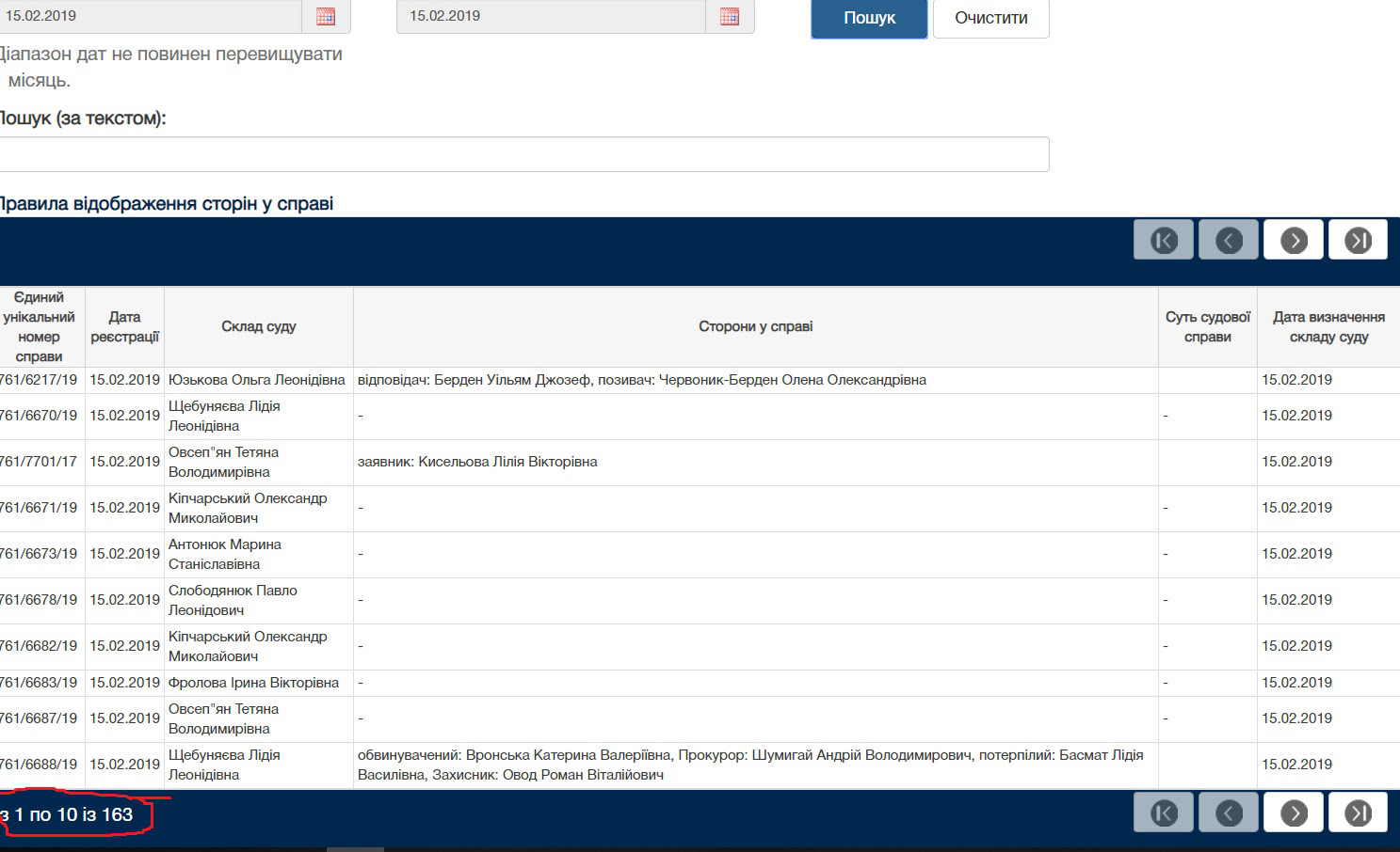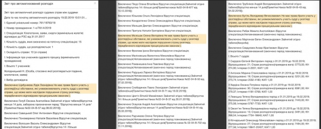 З нього вже дивним чином просто всупереч уже названим вище нормам виключають суддів зі справи Мартиненка. Система визначає розгляд клопотання судді Тетяні Овсеп'ян.