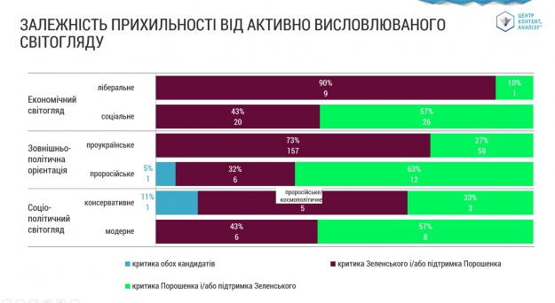 Консерватори – критики ЛГБТ і фемінізму – дещо частіше трапляються серед виборців Порошенка, а їхні опоненти з модерним світоглядом – серед виборців Зеленського.