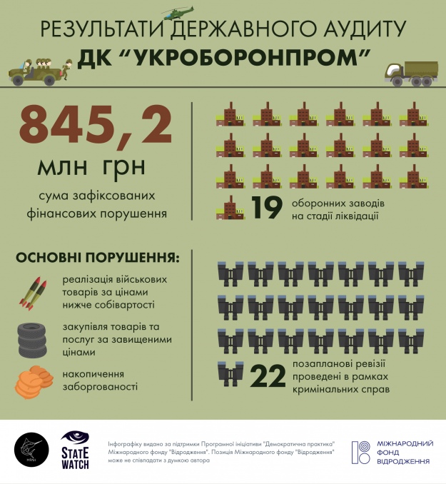 Загалом ревізори занотували фінансових порушень на 845 мільйонів гривень. А 19 заводів концерну на момент перевірок взагалі не здійснювали свою діяльність, оскільки перебували "в стані ліквідації". Людською мовою, остаточно розграбовані.