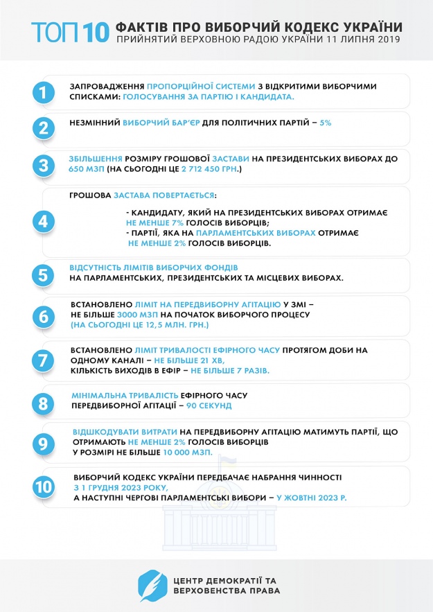 Центр демократії та верховенства права проаналізував та підготував 10 фактів про Виборчий кодекс України.