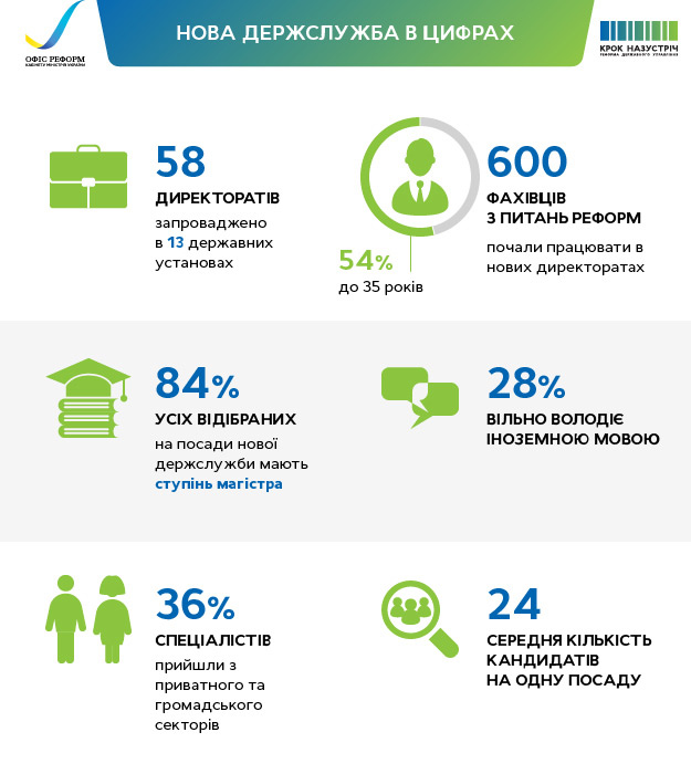 Ще наше дослідження показало, що 64% нових держслужбовців мали попередній досвід роботи в системі органів влади, тож це точно фахівці, які знають шлях по лабіринту українських бюрократичних процедур. Разом з "новою кров'ю" (решта 36% з приватного та громадського секторів) це дає чудове поєднання інновацій з інституційною пам'яттю.