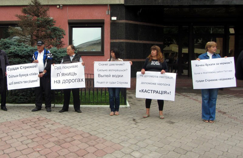 Зате відразу Струков повірив начальнику облуправління Нацбанку, якого затримали активісти, запідозривши, що той п'яним керує авто. Суд визнав: банкір невинуватий, а Hennessy на 2,07 проміле хильнув після вимушеної зупинки – аби нерви заспокоїти, тиск нормалізувати. Це рішення вивело містян на акцію протесту.