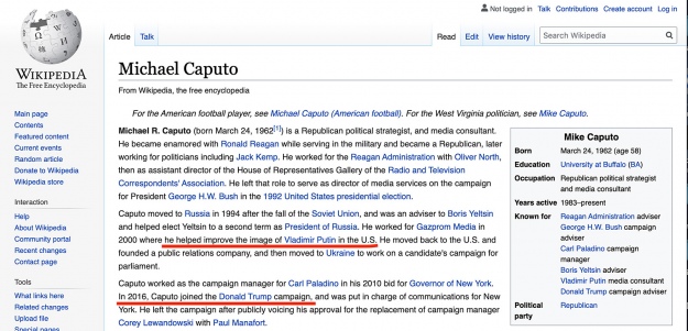 Та й сам Капуто визнавав, що "мав найбільше зв'язків з росіянами, ніж всі інші", в інтерв'ю CNN в контексті розслідування спецпрокурора Мюллера.