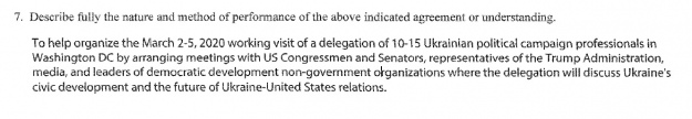 Досить проста суть – лобісти публічно демонструють, які саме і чиї інтереси, а також скільки коштів запропоновано за відповідні послуги "політичних турне", зустрічей з американськими політиками, бізнесменами, медіа тощо.