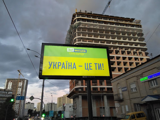 Гасло "Україна – це ти" партія "Слуга народу" застосовує у своїй зовнішній рекламі ще від початку серпня на території всієї країни. Локально для кожного міста були створені регіональні різновиди реклами з гаслами: "Черкаси – це ти", "Суми – це ти" тощо.