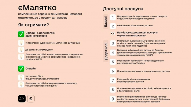Створюючи нові сервіси, ми в Мінцифрі концентруємося на ключових життєвих подіях. Народження малюка, очевидно, чи не найважливіша серед них. Саме тому ми багато уваги приділяємо сервісу "єМалятко", який від жовтня доступний ще й онлайн.