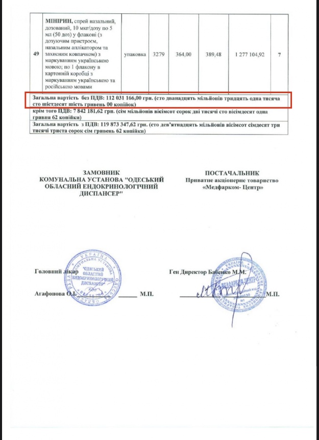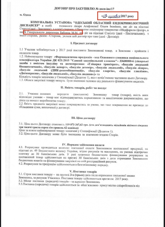 Так, у травні 2017 року "Медфарком-Центр" продала Одеському обласному ендокринологічному диспансеру ліки, ціна яких була значно вищою за ринкову.