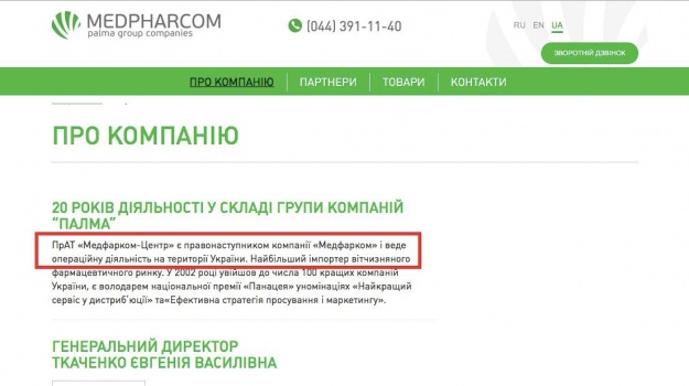 На сайті компанії зазначено, що "Медфарком-Центр" є правонаступницею іншої компанії — ТОВ "Медфарком", якою теж керував Михайло Бабенко.