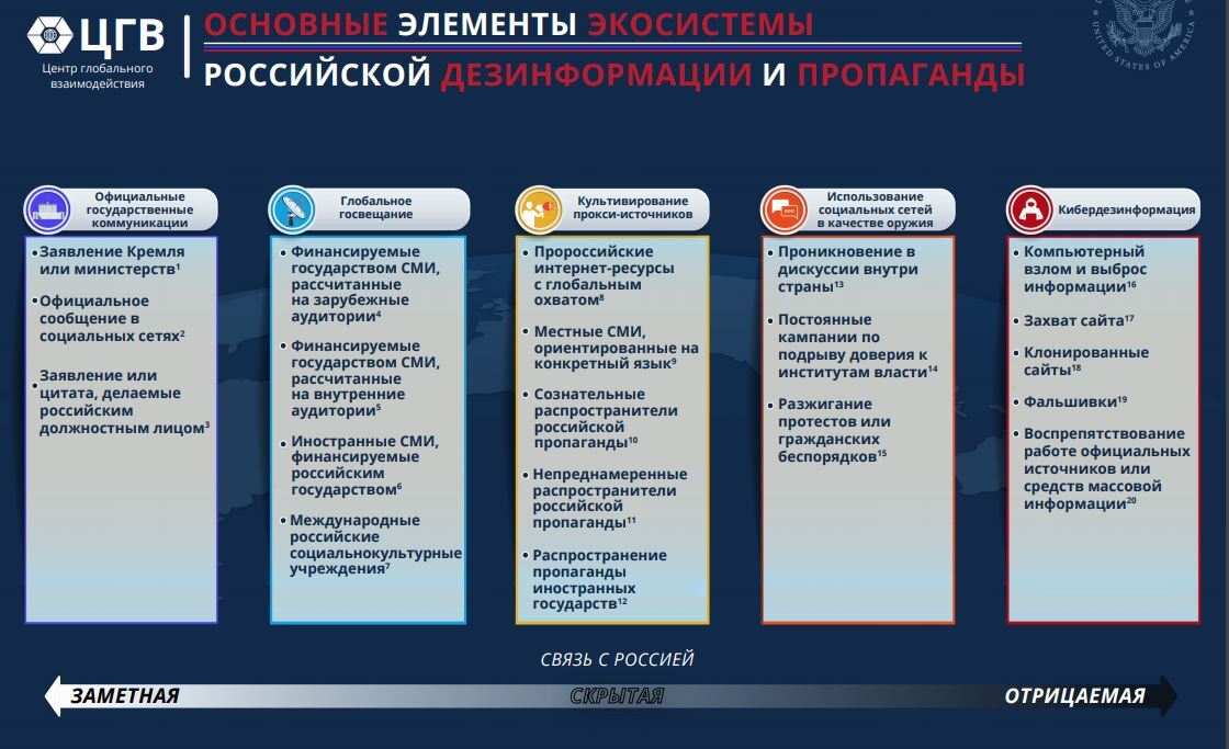 Телебачення РФ посідає одне з головних місць у розповсюдженні російської пропаганди, йдеться в доповіді Центру глобальної взаємодії Державного департаменту США.