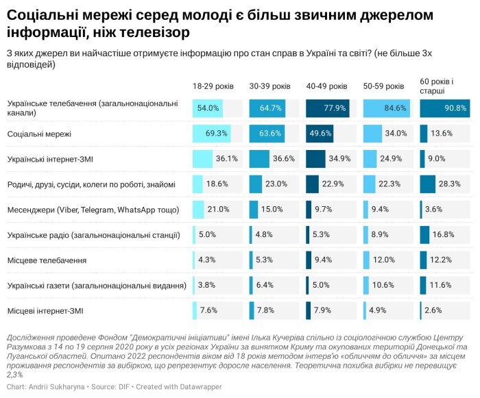 Звичайно, частка інтернету, зокрема соціальних мереж, зростає, і, згідно з дослідженням, становить 44%.