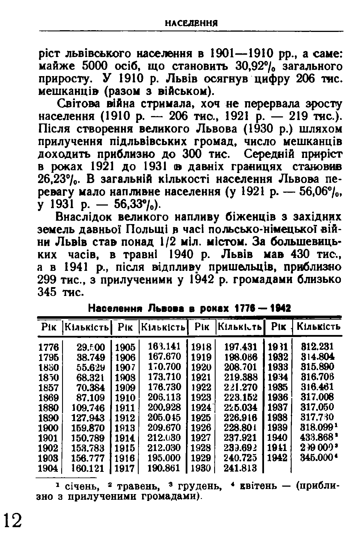 На этот счет в книге Степанів читаем следующее: "За большевицьких часів, в травні 1940 р. Львів мав 430 тис., а в 1941 р., після відпливу пришельців, приблизно 299 тис".