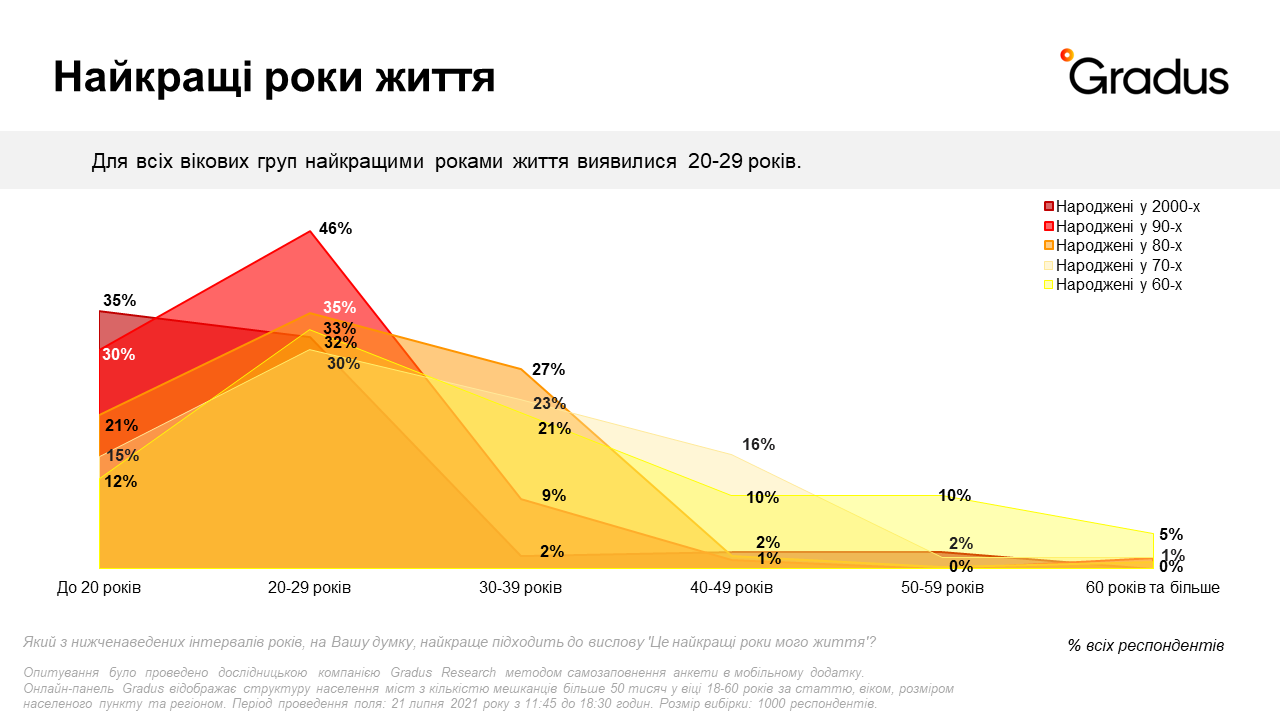 1. Найкращий вік для всіх поколінь респондентів – 20-30 років