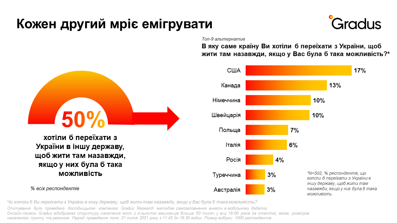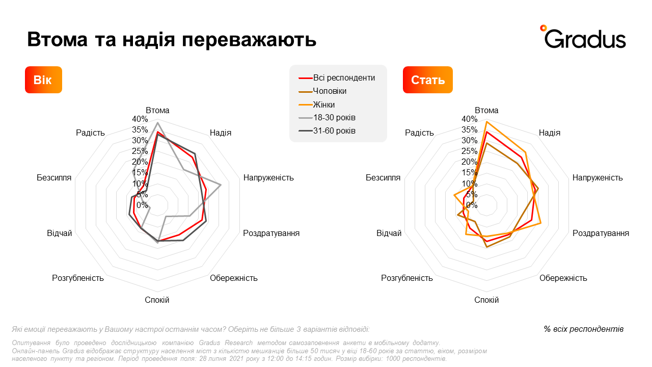 Опитування були проведені дослідницькою компанією Gradus Research методом самозаповнення анкети в мобільному додатку Gradus.