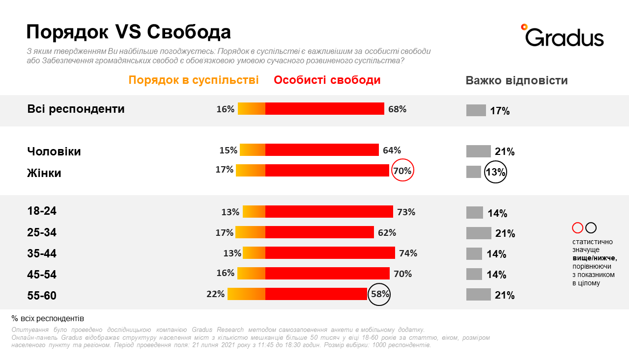 Проте всі групи солідарні в тому, що особисті свободи мають високий пріоритет у порівнянні з порядком.