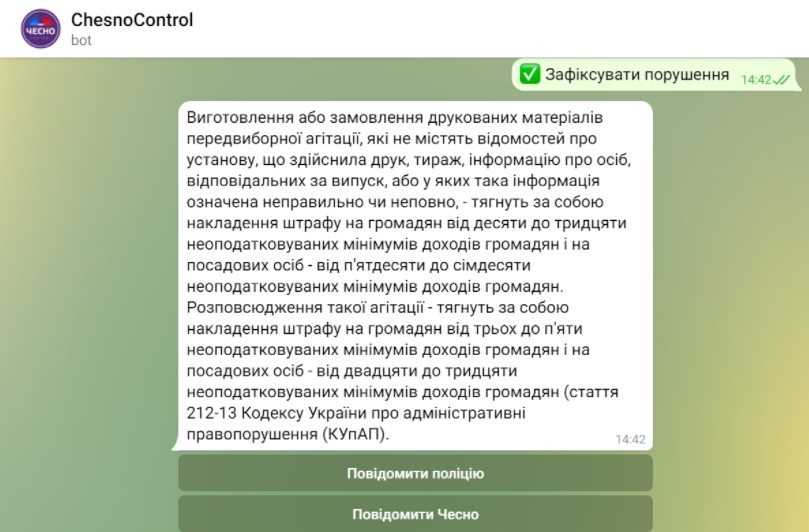 А про порушення на дільницях відтепер поліцію можна інформувати завдяки Telegram-боту "Контролюй з ЧЕСНО". Навіть якщо ви не знаєте статті закону, бот сам класифікує порушення й направить звернення до правоохоронних органів.