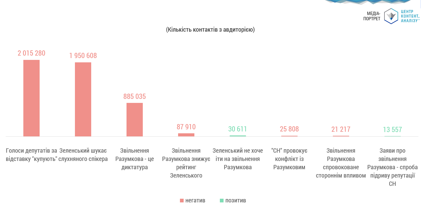 Тобто, у розпал конфлікту "СН" досі намагалася вгамувати медіапростір, аби не понести серйозніших репутаційних втрат. Це тільки грало на руку Разумкову, бо він уже мав повний контроль над ситуацією і абсолютна більшість думок у медіа були лояльні до нього і критичні до ЗЕкоманди.