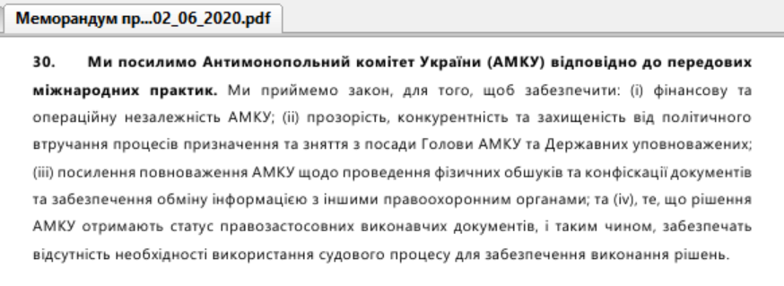 Реформу Антимонопольного комітету (АМКУ) у меморандумі з МВФ вперше прописали ще влітку 2020 року.