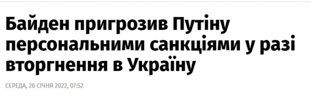 Натомість Президент США Джо Байден заявив, що також розгляне персональні санкції проти Володимира Путіна, якщо Росія вторгнеться в Україну.