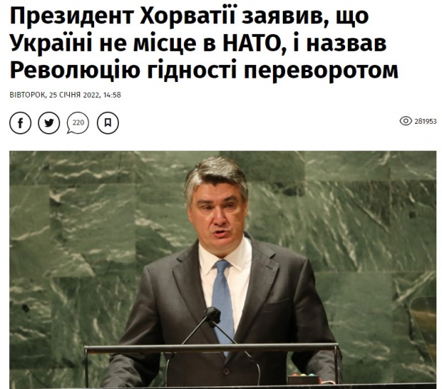 Президент Хорватії заявив, що Україні не місце в НАТО