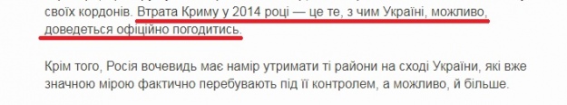 А далі автор пише про те, що не виключено, що нам доведеться офіційно (!) погодитися із втратою Криму.