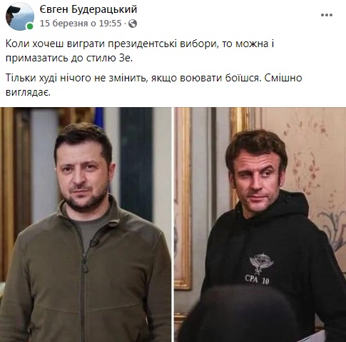У Франції, де торгова мережа Леруа Мерлен досі працює з окупантами, президент вдягнувся як Зеленський, ймовірно, щоб підняти рейтинг.
