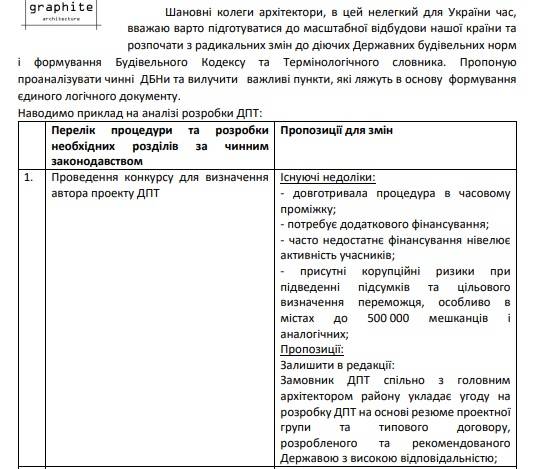 З документу, який вдалося отримати, випливає, що саме лобісти-забудовники хотіли б прибрати із законодавчого поля.