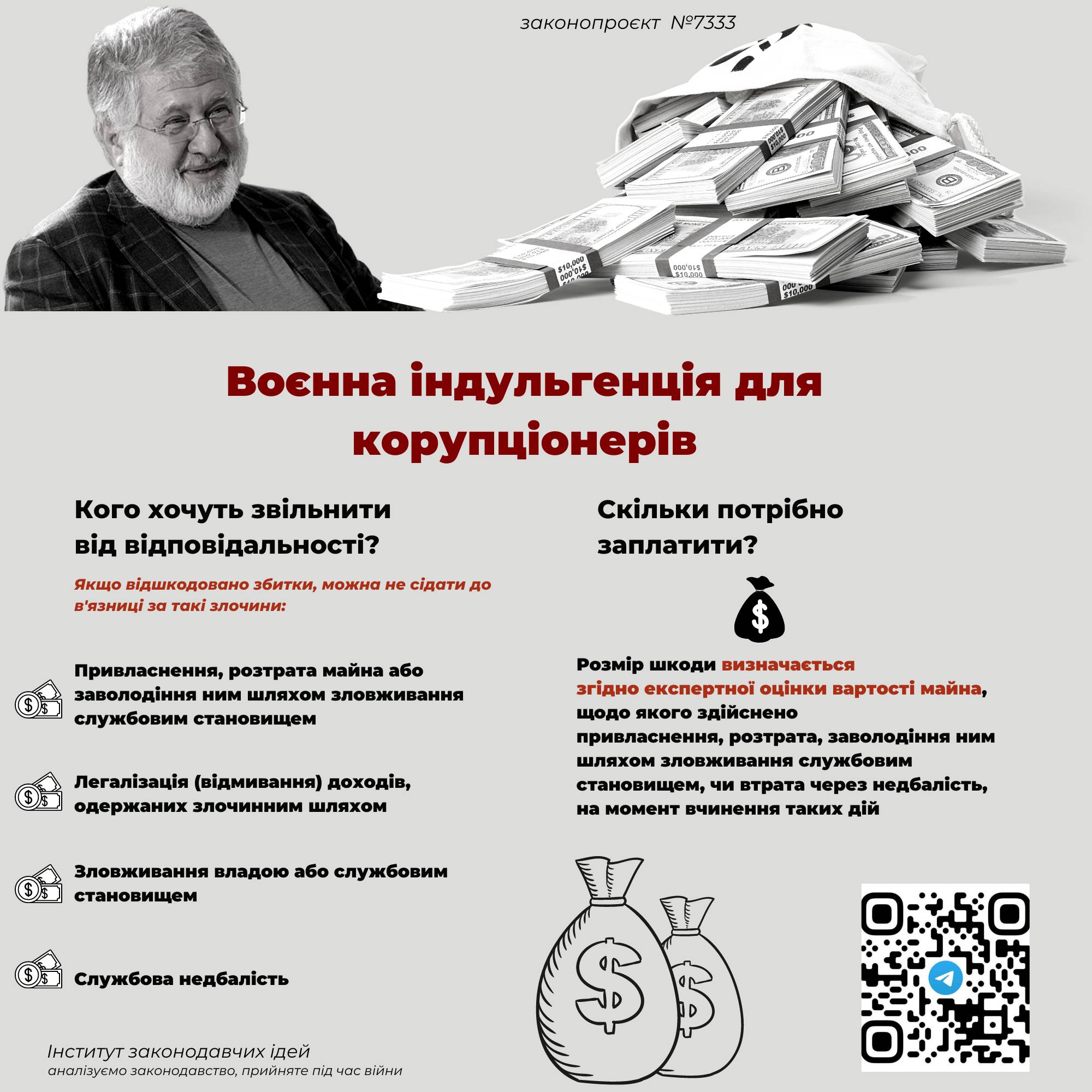 Інститут законодавчих ідей виступає проти ухвалення вказаного проєкту в такому вигляді, як такого, що може створити умови для вибіркового звільнення від відповідальності осіб, підозрюваних у серйозних злочинах, у тому числі корупційних.