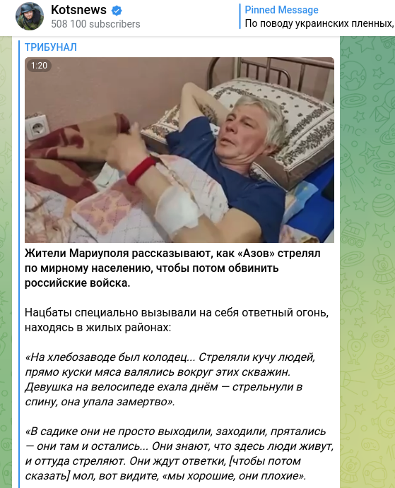 Під час боїв за Маріуполь почали з'являтися ролики, на яких мешканці звинувачували українських бійців, і полк "Азов" став головною мішенню цієї кампанії.