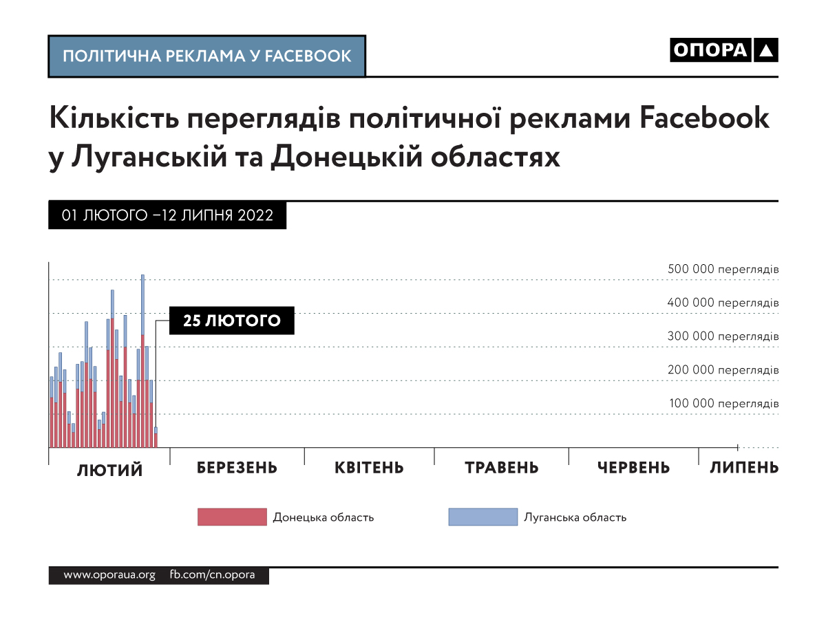 Аналіз даних політичної реклами показав, що українські користувачі з Донецької та Луганської областей перестали взаємодіяти з рекламою після 25 лютого.